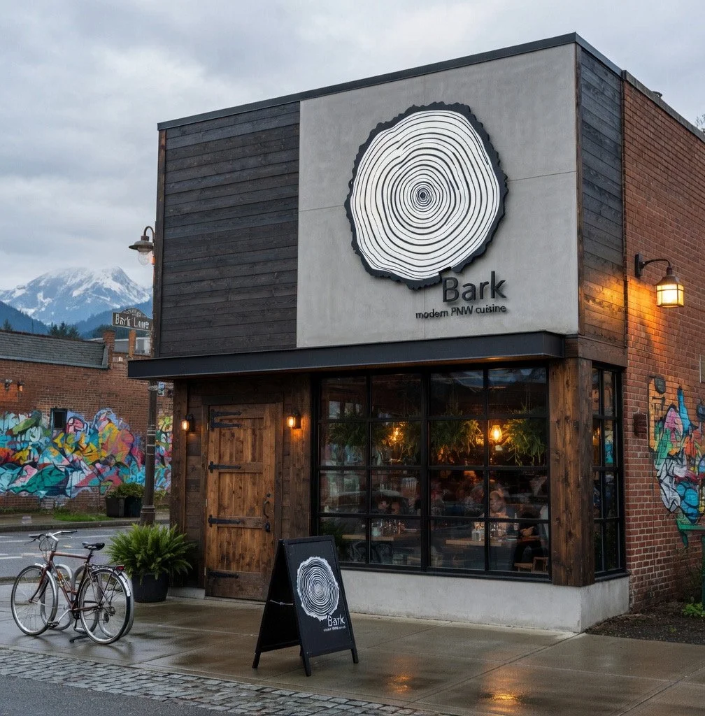 Bark — a modern Pacific Northwest cuisine restaurant in Bellingham, Washington — was preparing to open its doors but had no brand identity to speak of. Without a logo or visual direction, they had no foundation for their printed materials, signage, or the overall impression they wanted to make on guests. They needed a complete brand built from the ground up, one that could carry their story across every touchpoint.
